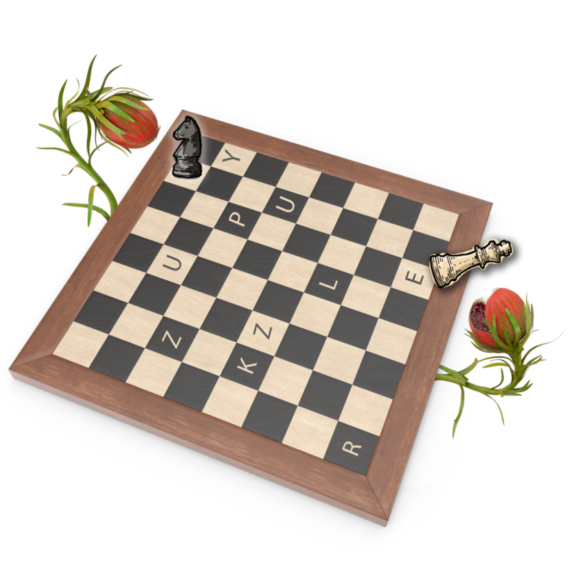 Well done! You've discovered a bonus clue that will help your team gain extra points. The picture below shows a chess board found in the professors' study. Can you crack what word is hidden among the letters? Examine the image, solve the picture conundrum and submit your answer along with WHO committed the crime? HOW and WHY? Get the clue correct and your whodunit host will award your team 25 bonus points! Good Luck...